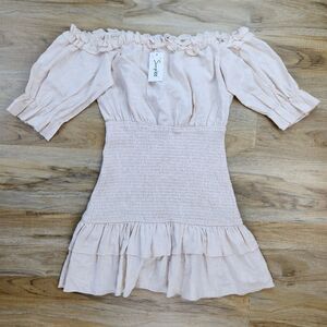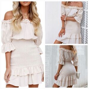 🔸️NWT Simplee Cream Smocked On/Off Shoulder Dress Large