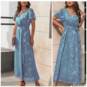 NWT Simplee Short Sleeve Wrap Maxi Dress V Neck Burnout Floral Formal Dress