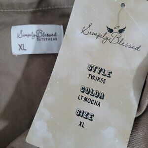 NWT Simply Blessed Light Mocha Brown 100% Cotton Unlined Jacket TWJK55 Size XL