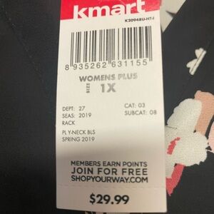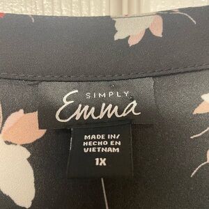 NWT Simply Emma 1X Floral Black Blouse Long Sleeve Size 1X