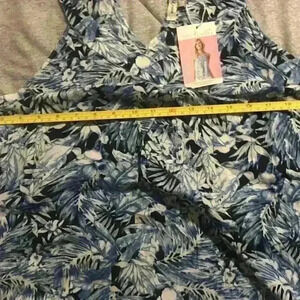 NWT Simply Noelle Blue Tropical Tie Back Tank XXL Lightweight 2XL