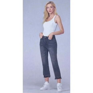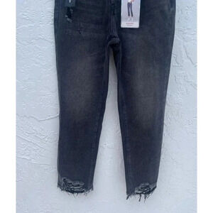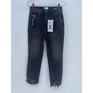 NWT Simply Society Womens Straight Super High Rise Distressed Jeans Black 5/27