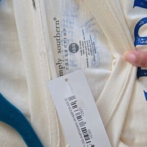 Chic Simply Southern tee with bold graphic design. Soft cream fabric for comfort.