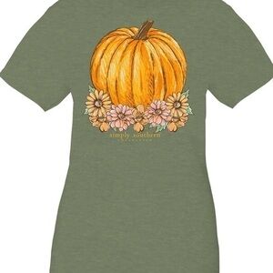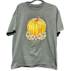 NWT Simply Southern Fall Floral Pumpkin Short Sleeve Tshirt Heather Green XL