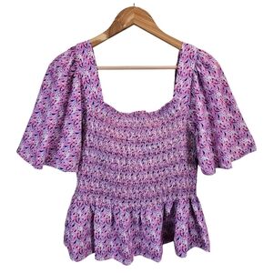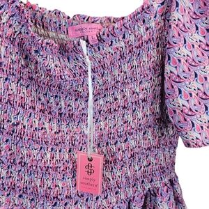 NWT Simply Southern Pink Paisley Smocked Top With Ruffle Hem Size Large Coastal