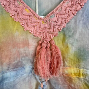 NWT Simply Southern Tie Dye Coverup Tassels Beaded Drawstring Waist Size S / M