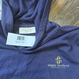 NWT Simply Southern Youth Small Be the Light Hooded Sweatshirt Navy Fireflies