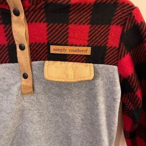 NWT Simply Southern Kids Large Outdoor Mountain Pullover Fleece Plaid Red Gray