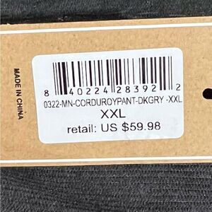 NWT Simply Southern Men’s Stretchy Corduroy Pants Dark Gray XXL