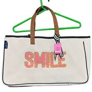 NWT Simply Southern “Smile” Corduroy Sparkle Tote Bag