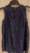 Gorgeous navy sleeveless high neck top by Vera Wang in size extra small women’s fully lined, cool and breezy navy burnout great for that party or just be a standout at any event.