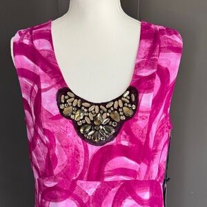 NWT Simply Vera Vera Wang Vibrant Pink Patterned Midi Dress Size L