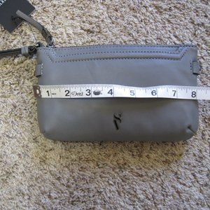 New with tags Simply Vera Vera Wang gray wristlet. Material: Man made imitation, faux leather and 100% polyester.