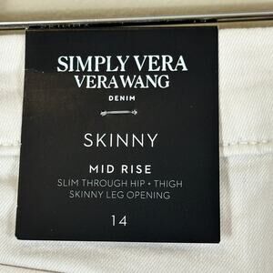 NWT Simply Vera Wang Skinny Jeans Womens 14 White Mid Rise Stretch Neutral
