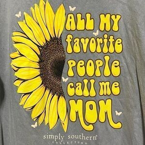 NWT Simply Southern ‘All My Favorite People Call Me Mom’ Oversized Sunflower Graphic Tee OSFA