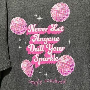 NWT Simply Southern “Never Let Anyone Dull Your Sparkle” Disco Ball Short Sleeve Tshirt
