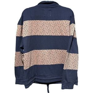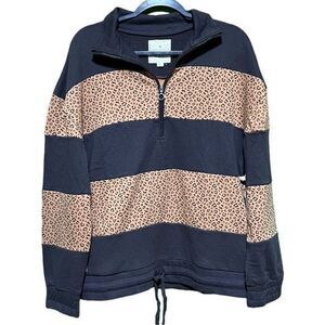 NWT Simply Southern Quarter Zip Leopard Print Gray Striped Pullover Large