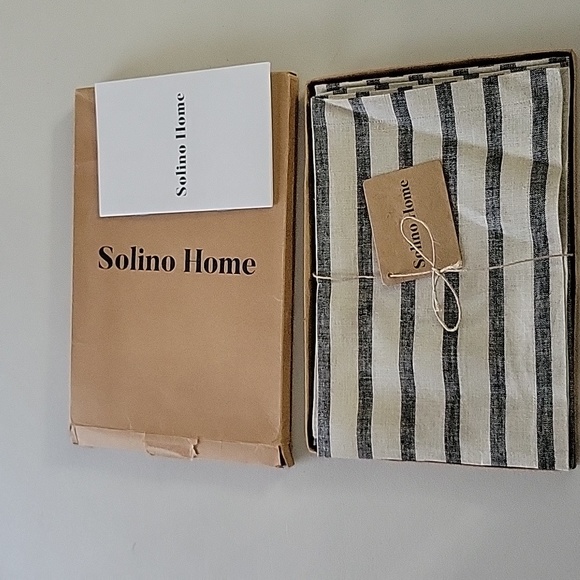 Solino Home strip linen napkins, set of 4, 20x20, 100% pure linen, black and natural Madison stripe farmhouse, washable, NWT