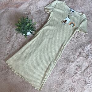 NWT Sincerely Jules Beige Ribbed Short Sleeve Embroidered Rainbow Dress MED