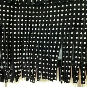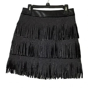 - Faux Leather Black fringe Mini Skirt with Fringe and Silver Stud Detail