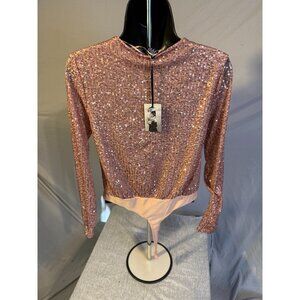NWT Sincerely Jules Pink Sequins Bodysuit Long SLeeve Vneck Womens Small S