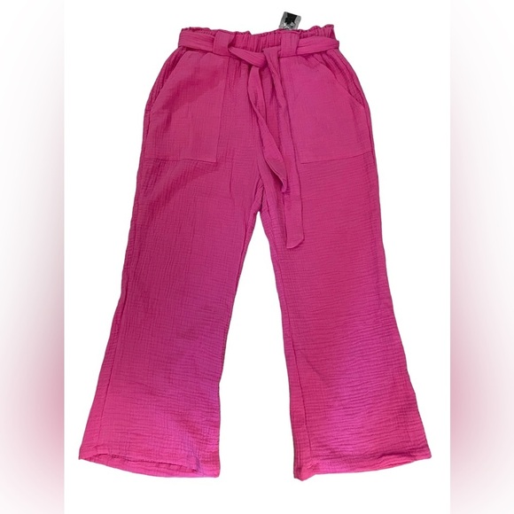 NWT Sincerely Jules pink textured wide leg high rise cropped pants size large