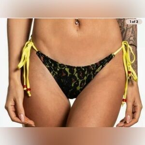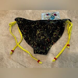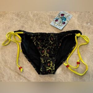 NWT Sinful By Affliction Solar Bikini Bottom Lace over Leopard Yellow & Orange
