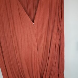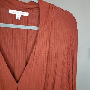 NWT Single Thread Ribbed Wrap-front Top In Fried BRick