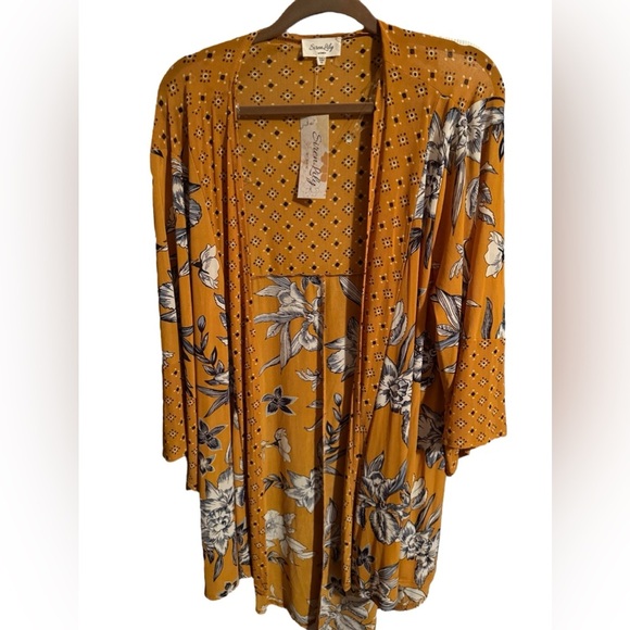 NWT Siren Lily Women’s Mustard Floral Coverup – 1X – Sheer Shawl with Sleeves