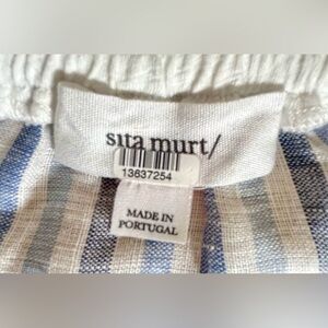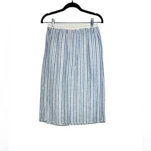 NWT Sita Murt 100% Linen Blue & White Striped Midi Pull-On Skirt with Stretchy Elastic Waist and Drawstring. (Top not included.) Moisture-wicking, lightweight, easy-to-wear and easy-to-pair. Great vacation piece for spring and summer.