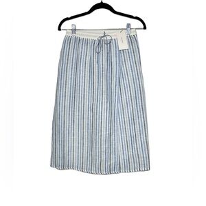 NWT Sita Murt Linen Blue & White Striped Midi Pull-On Skirt w/ Drawstring 8 (40)