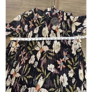NWT Six Feathers Boutique Illa Illa Black Floral Pleated Swing Dress Size Small