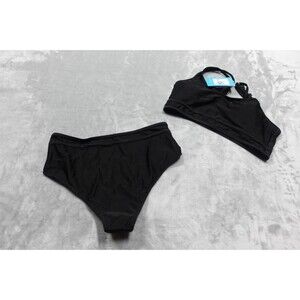 NWT Size Large Cupshe Women's Size 2 Black Halterneck Bikini Set Top & Bottom
