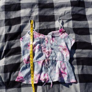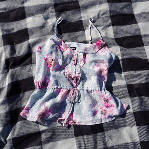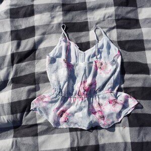 NWT Size M Express Floral Spaghetti Strap Blue Polka Dot Peplum Top