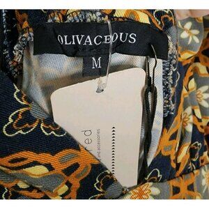 NWT Size Medium Olivaceous Dress Mustard / Navy Blue Floral Midi Flutter