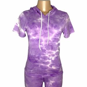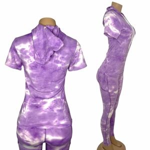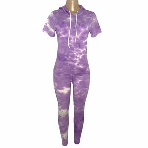 NWT Size S and M 2 Pieces Purple Tie Dye Women Set Leggings and Hoodie Top