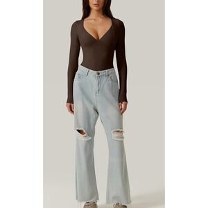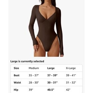 NWT Size XL QINSEN Women's Long Sleeve Bodysuit With V-Neck & Seamed Cups