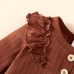 NWT Size 6-9 months, 2 piece baby girl romper set, ribbed, brown long sleeved