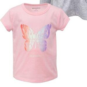 NWT Skechers 3-Piece Set 2T Zip-up Hoodie & Fleece Jogger Pants & Tee Pink Gray