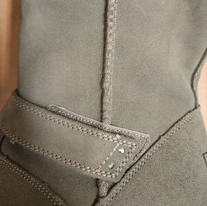 These stylish Skechers shape up boots have a beautiful medium gray outer suede leather, great detailing with stitching & rhinestones on end of adjustable straps, interior is completely lined with faux fur inside and superb tread sole on bottom of boots for ice & snow this season. These will be the warmest boots you wear ALL Winter! Sz 9