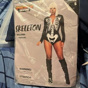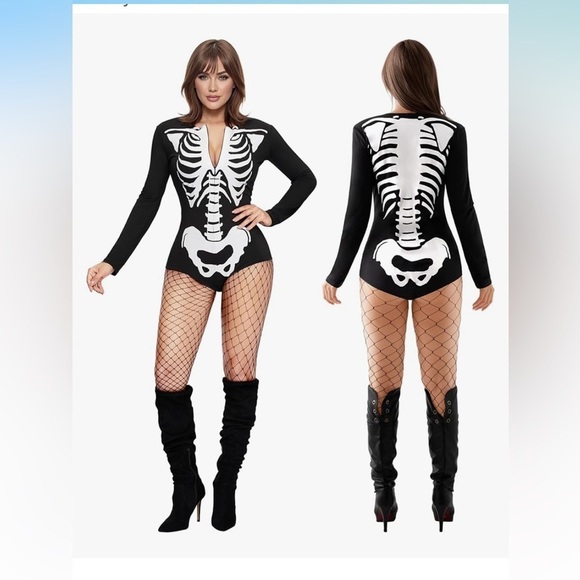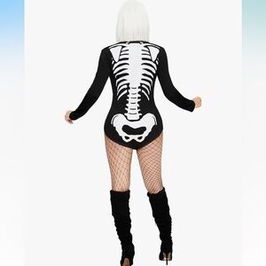 Black and white skeleton print bodysuit. Long sleeves with a bold design.