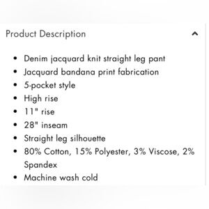 NWT Skies Are Blue Bandana Print Straight Leg Jeans