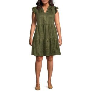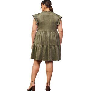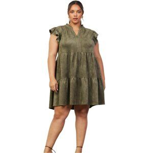 NWT Skies Are Blue Faux Suede Tiered Mini Dress in Olive Sz. 3X