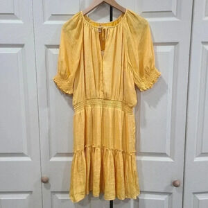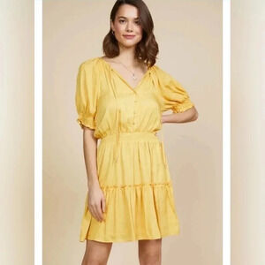 NWT Skies Are Blue Yellow Smocked Waist Ruffle Tiered Dress Size Medium M