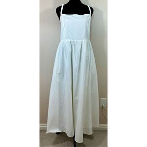 NWT Skies Are Blue Criss Cross Back Tie Fitted Bodice Timeless Midi White Dress