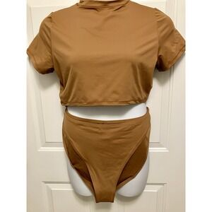 NWT Skims Cropped Swim T Shirt Bikini Set Almond 2X/3X Plus Women's Swimsuit