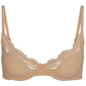 New With Tag - Skims Fits Everybody Lace Unlined Scoop Bra in Nude Beige. Size 44A