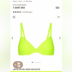 NWT- Skims. Fits everybody T-shirt bra. Color: Green Highlighter. Size: 40DDD