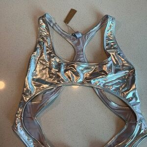 NWT Skims Metallic Cut Out One Piece Swimsuit Monokini Nickel Silver 3X