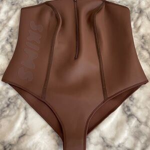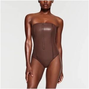 NWT! Skims Rubberized scuba swim strapless one piece-Cocoa—4x.
